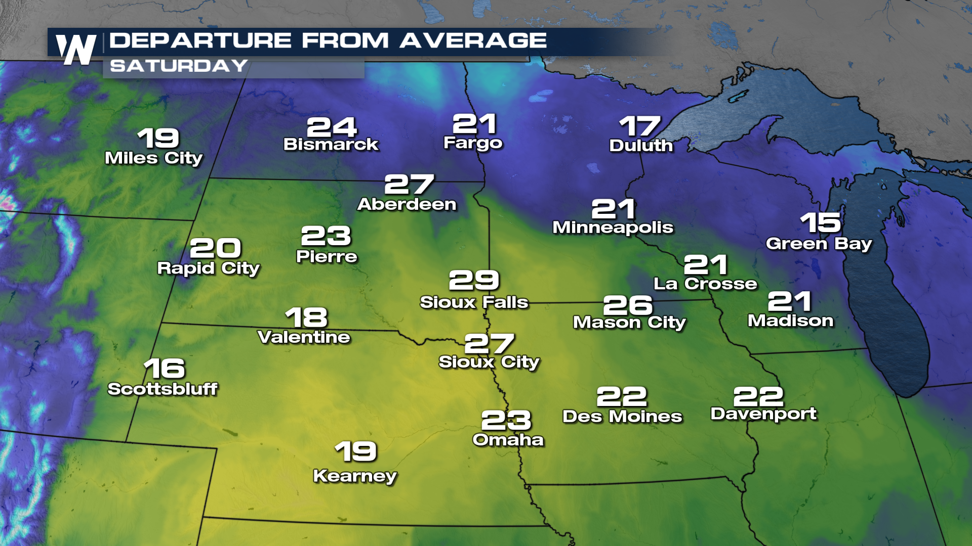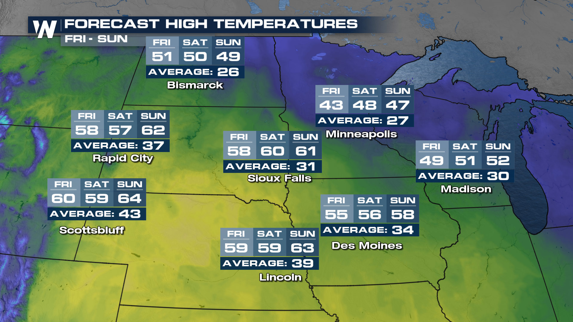 Cities such as Sioux Falls and Minneapolis, which have been feeling temperatures well below 0° at times this year, will suddenly feel temperatures that are more typical of April.