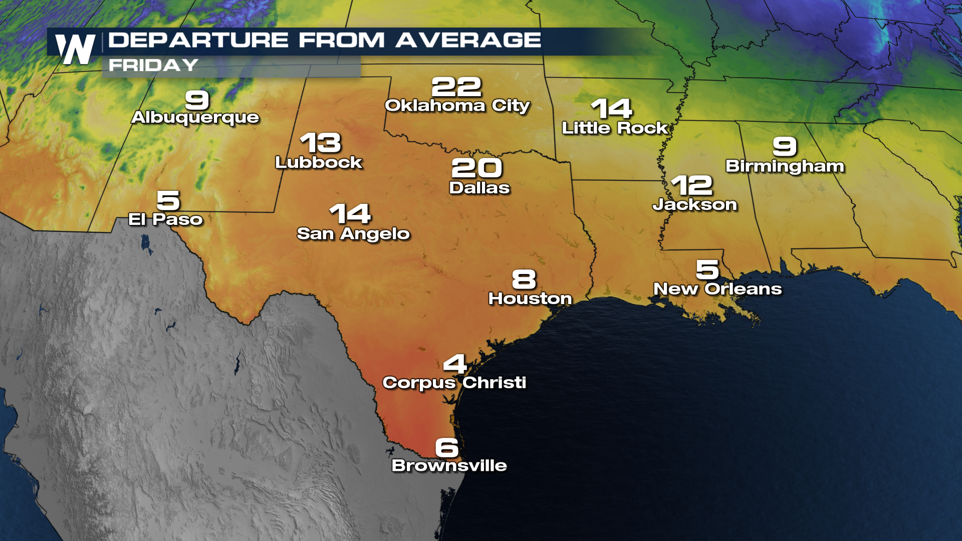 Upper-level high pressure will strengthen and build northward as we wrap up the week. This will begin to shove the arctic air back to the north and allow a significant warm-up from the Gulf to the Canadian border.