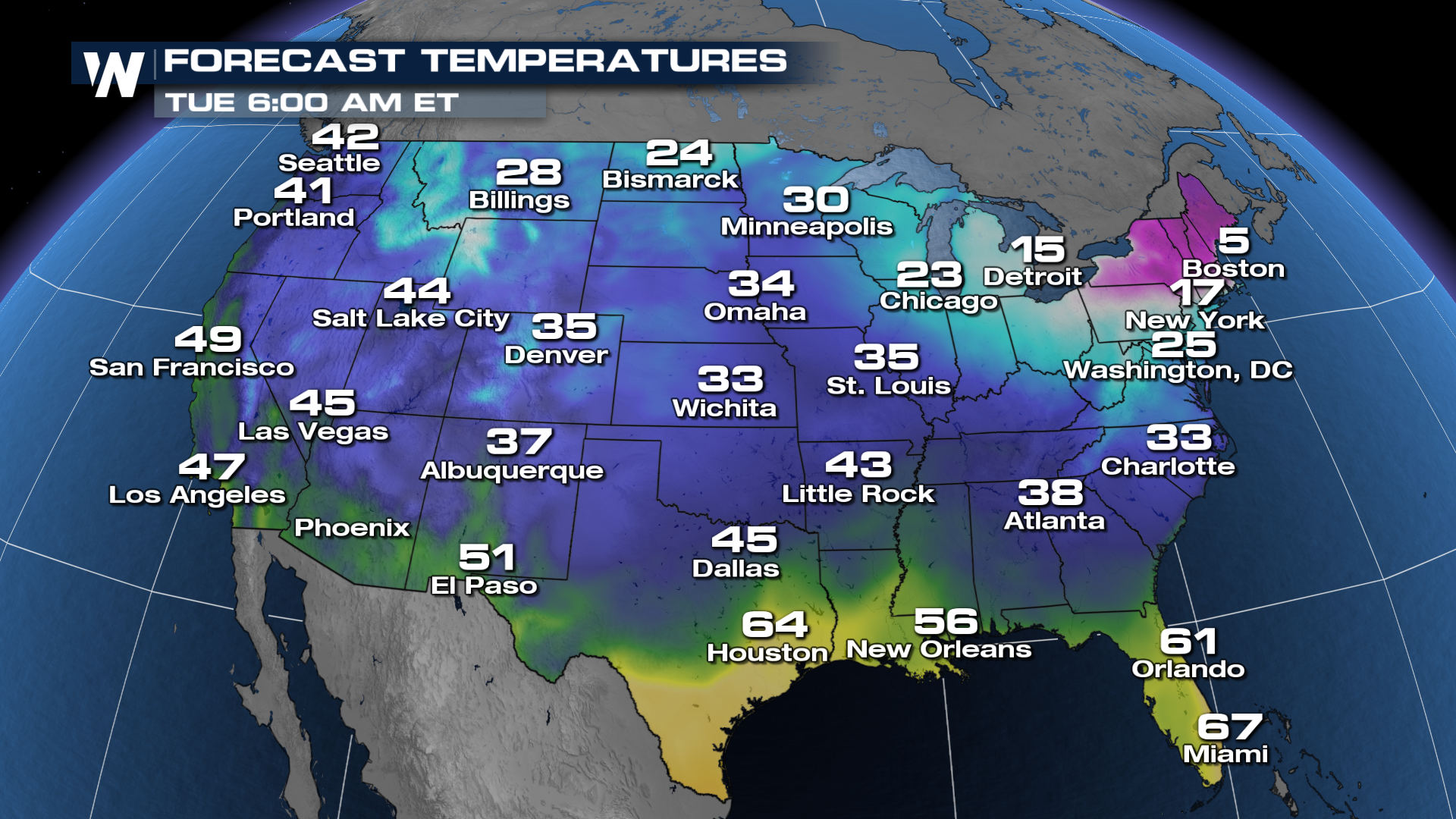 Temperatures will be on the chilly side for many, with 30s for much of the country.