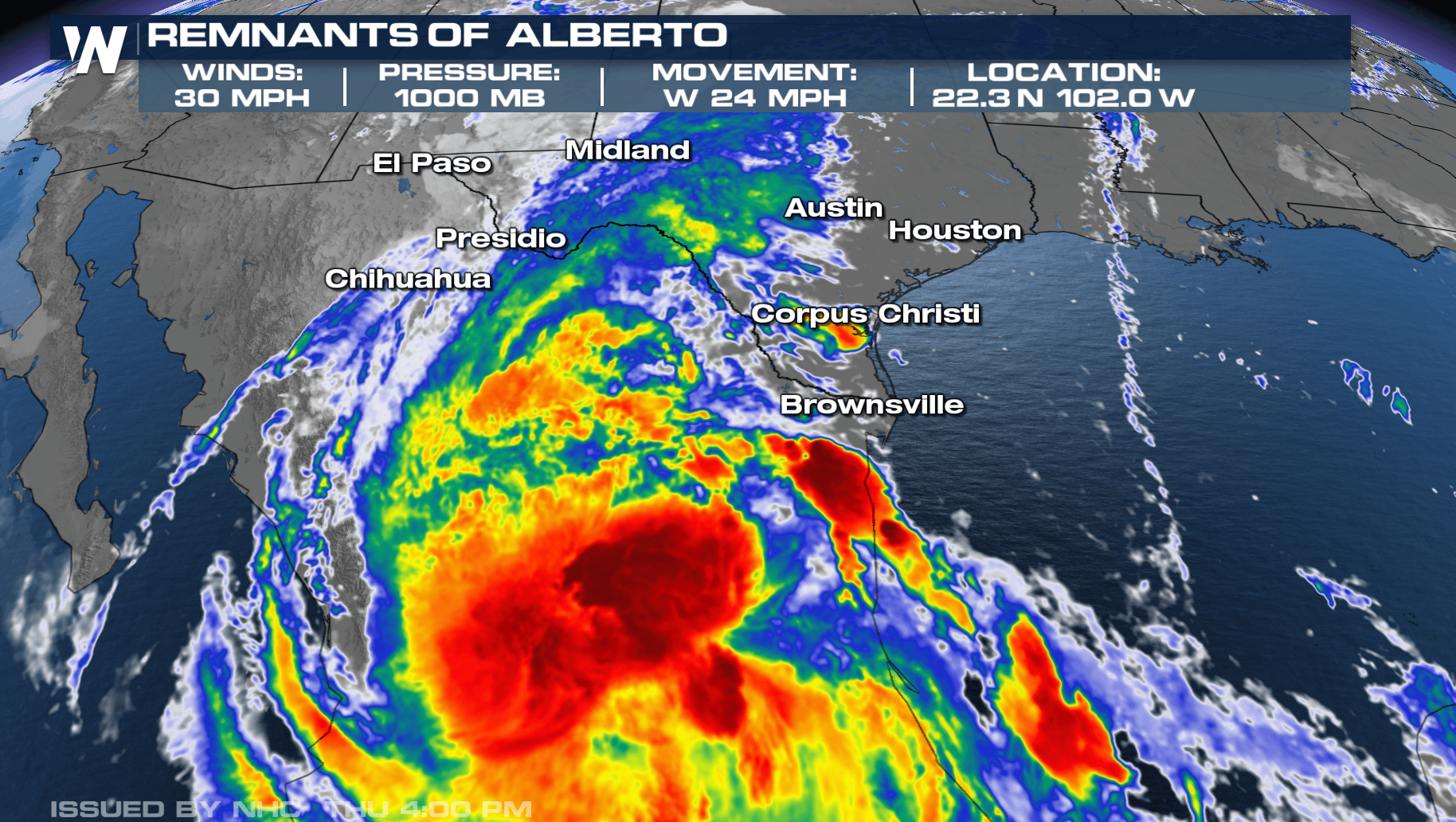 As of 4 PM CDT, the National Hurricane Center has issued its last advisory on Alberto, now dissipating into remnants. Alberto made landfall in Mexico early Thursday morning, near the town of Tampico, as a tropical storm. This system impacted south Texas with heavy rainfall and strong winds over the past few days, but the biggest impacts were coastal flooding and storm surges. Storm surge was measured at 2-4' along the Texas coastline as onshore flow pushes water into communities.
