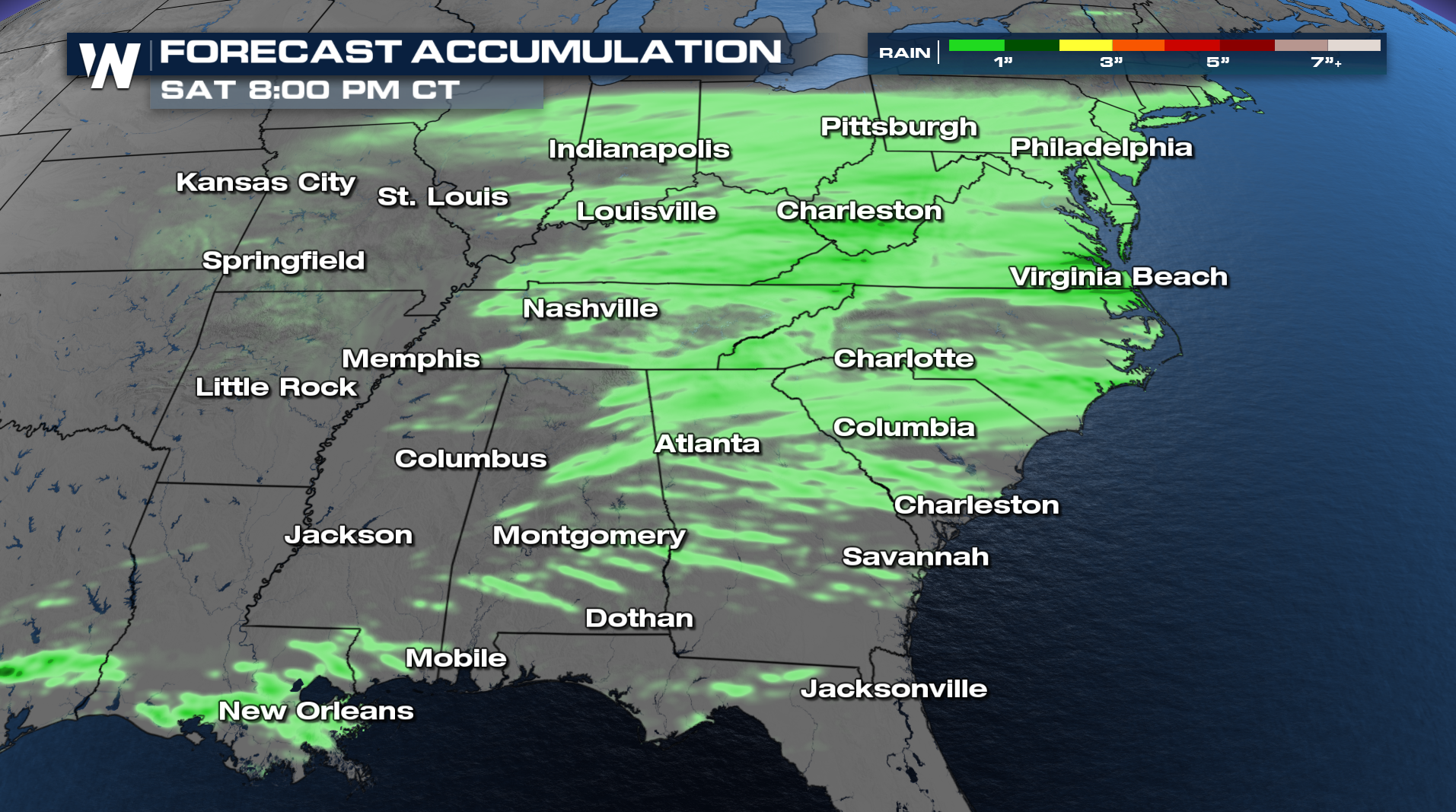 Rainfall totals don't look too impressive thanks to the progressive movement of this system. 1-2 inches is expected for most areas that see thunderstorms.
