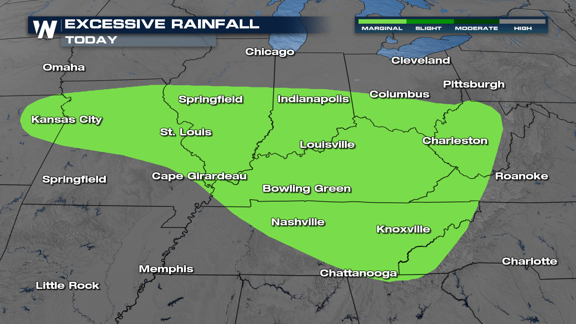Rainfall could come down quickly enough to produce flooding from the Midwest to the Mid-South.