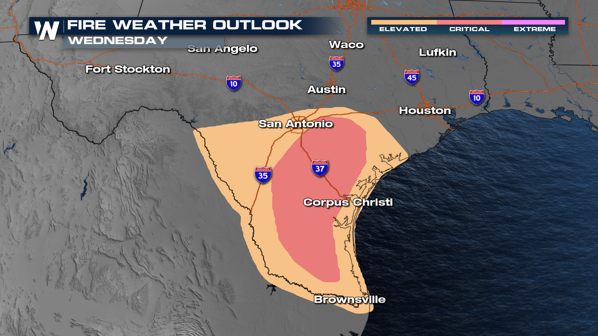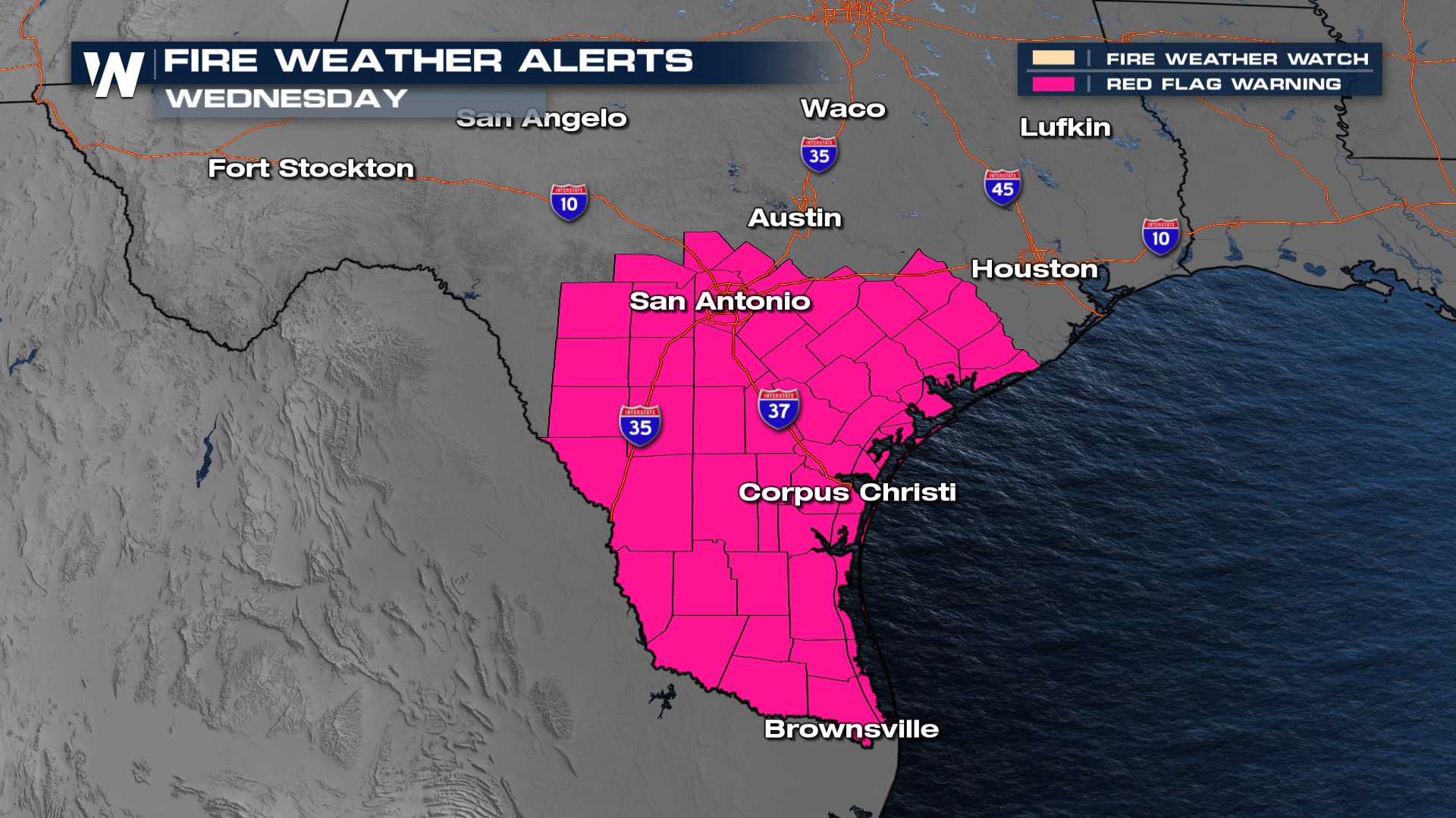 With strong winds, ongoing drought, and low relative humidity, there is critical fire danger across south Texas on Wednesday. There is also a red flag warning for these regions too. So be sure to avoid outdoor burning on Wednesday.