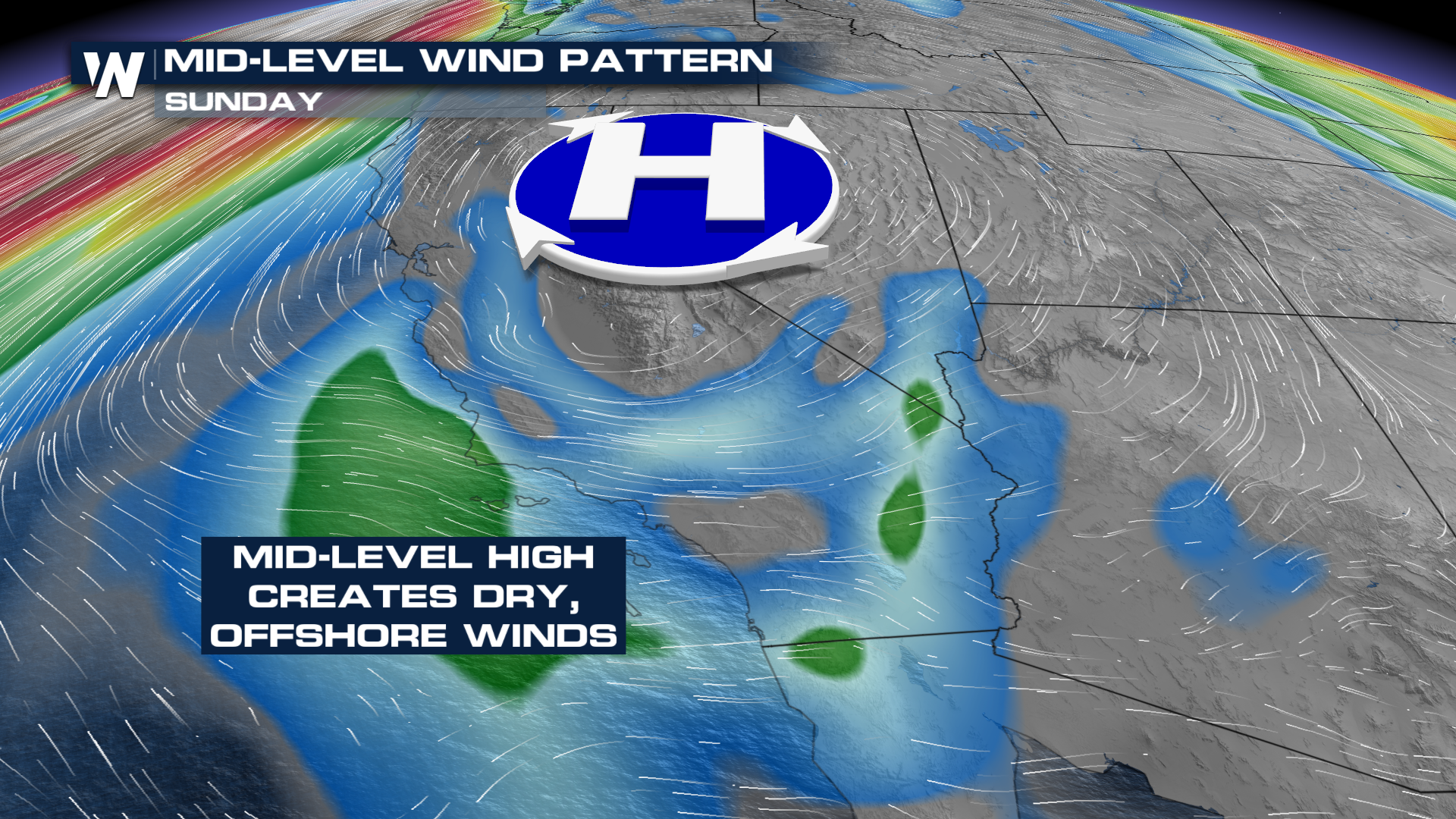 Any time high pressure sets up somewhere in the Great Basin or Four Corners, there could be offshore flow, winds blowing from the desert to the Pacific Ocean. When that happens, those winds are much warmer and drier as they cross up and over the San Gabriels and San Bernardinos. The Storm Prediction Center is highlighting areas just north of LA with an ELEVATED risk for wildfire growth today, but it hasn't risen to the level of a Red Flag Warning.