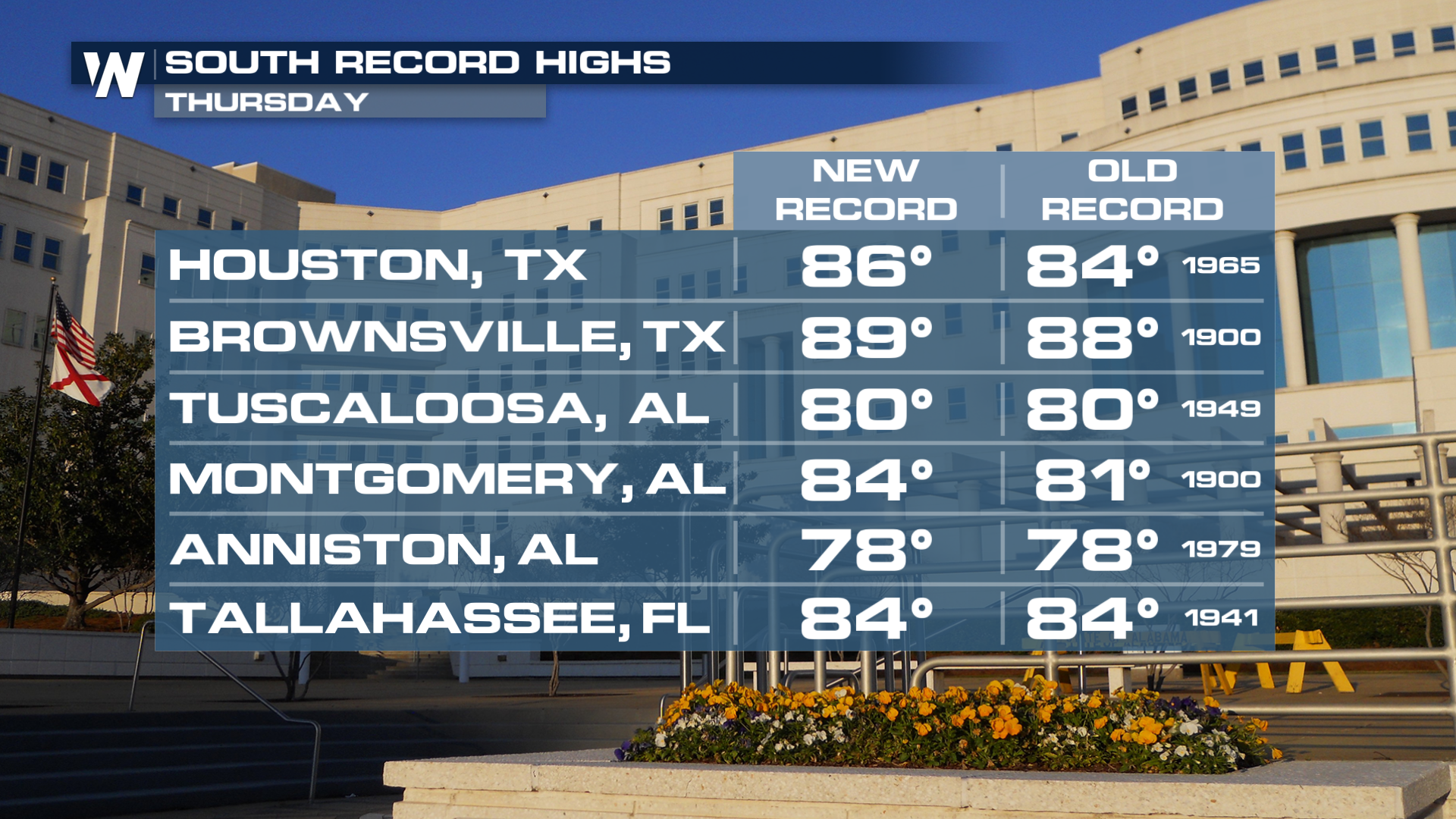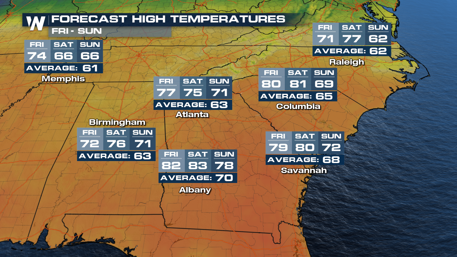 Another November day in the south and another day of more record warmth! The high-pressure system bringing the record temperatures continues to dominate the pattern and will stick around through the weekend.