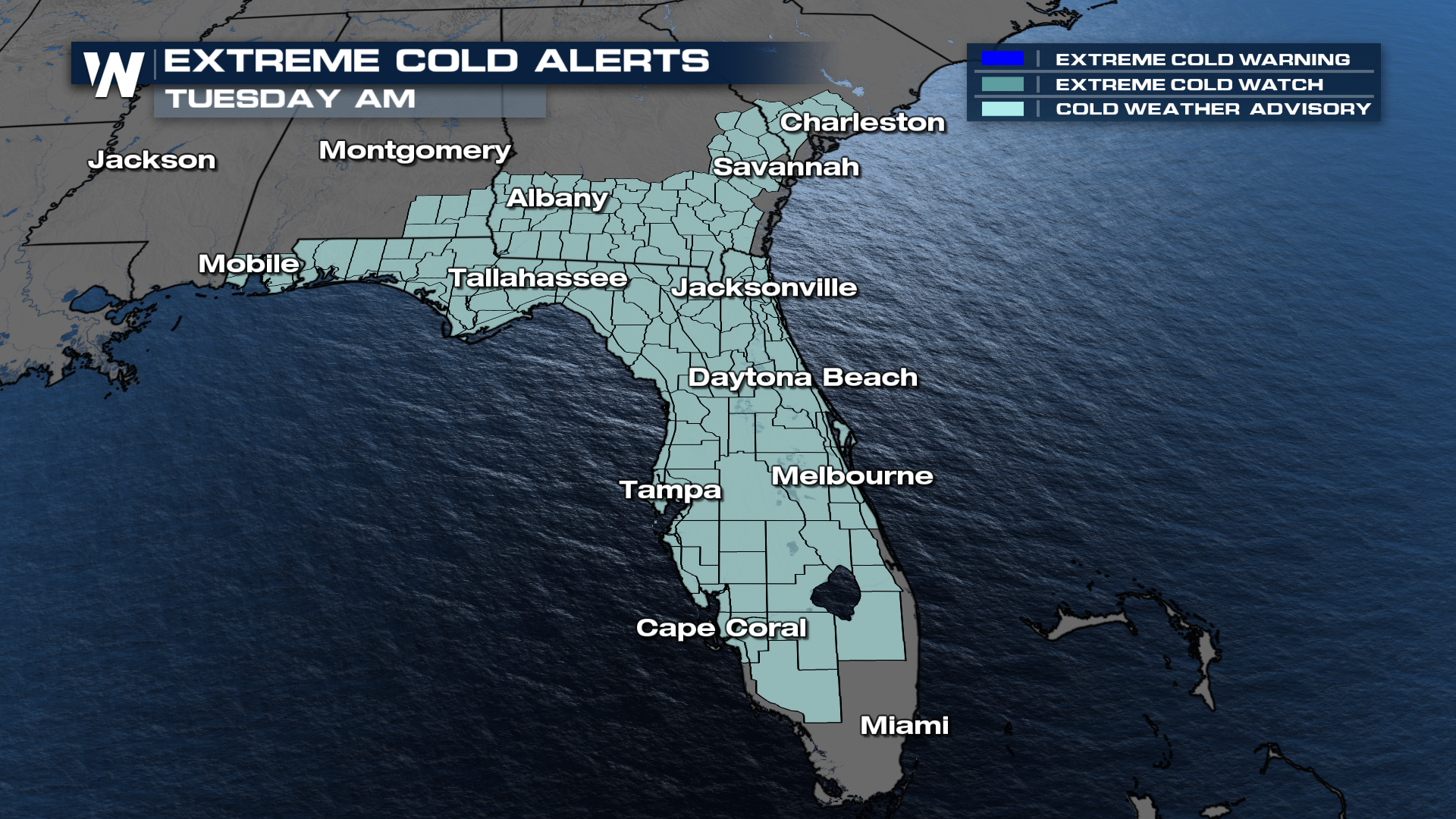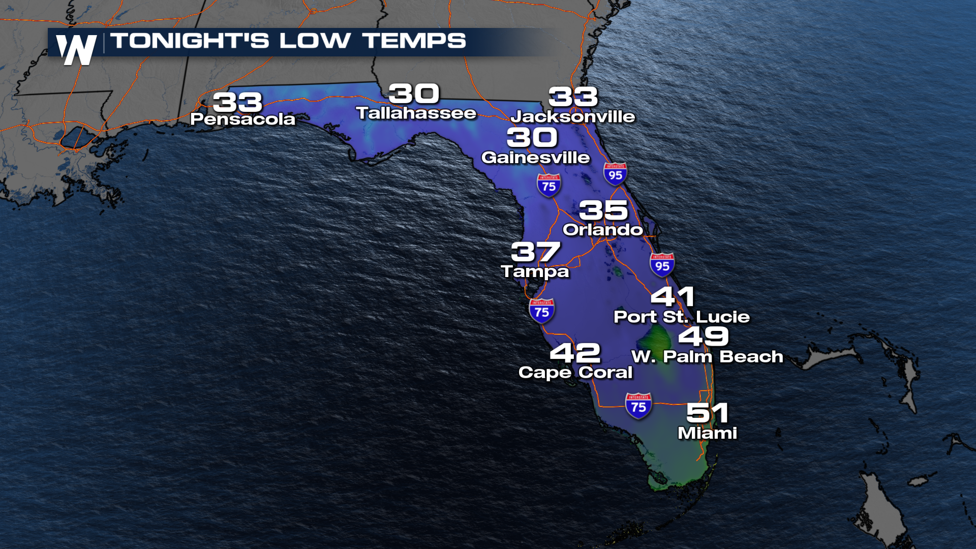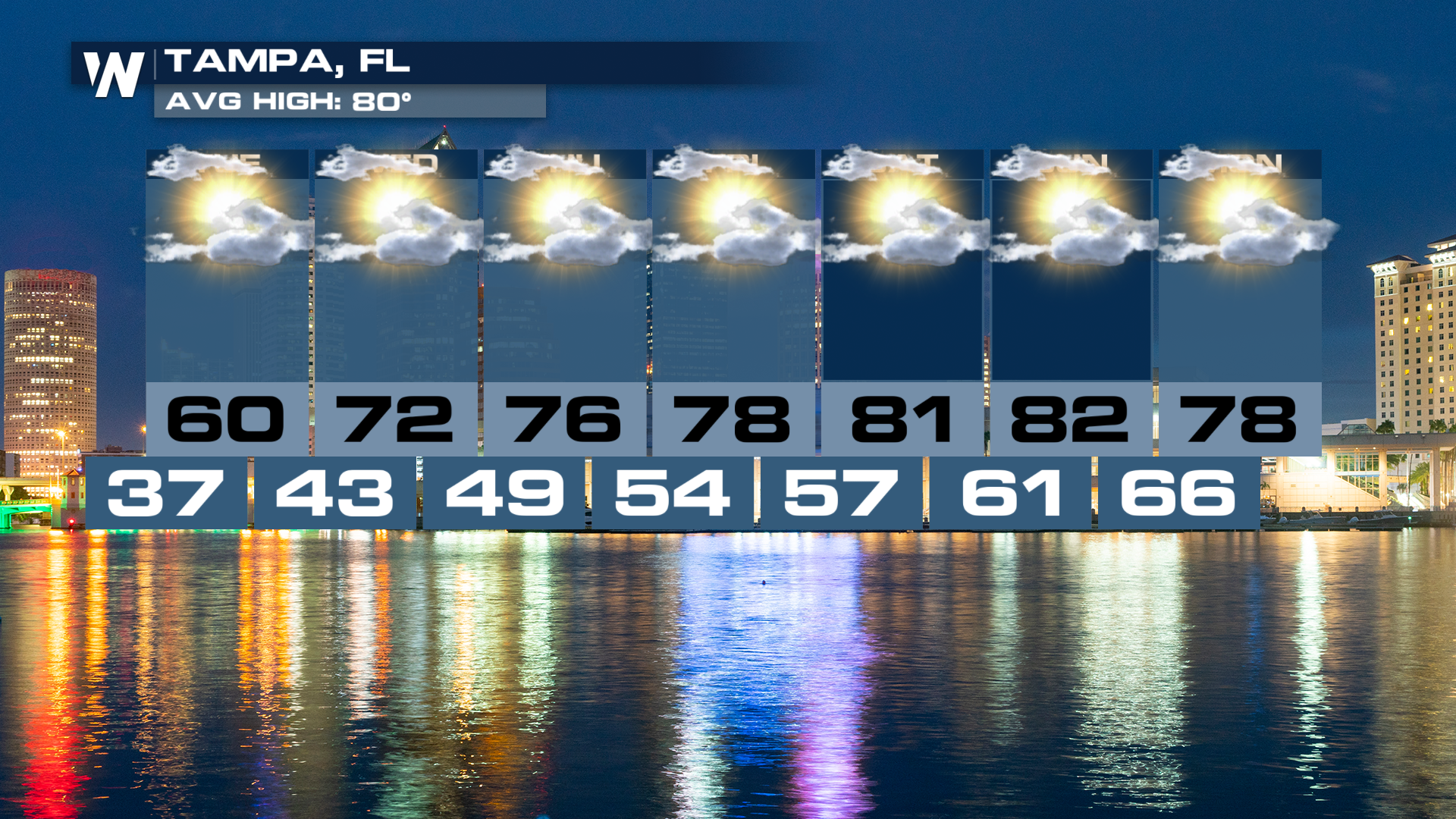 Temperatures in Tampa are expected to dip to near freezing on Monday evening, with wind chills below 40 degrees. The wind chill threshold is what activates the warming shelters opening in the Tampa area.