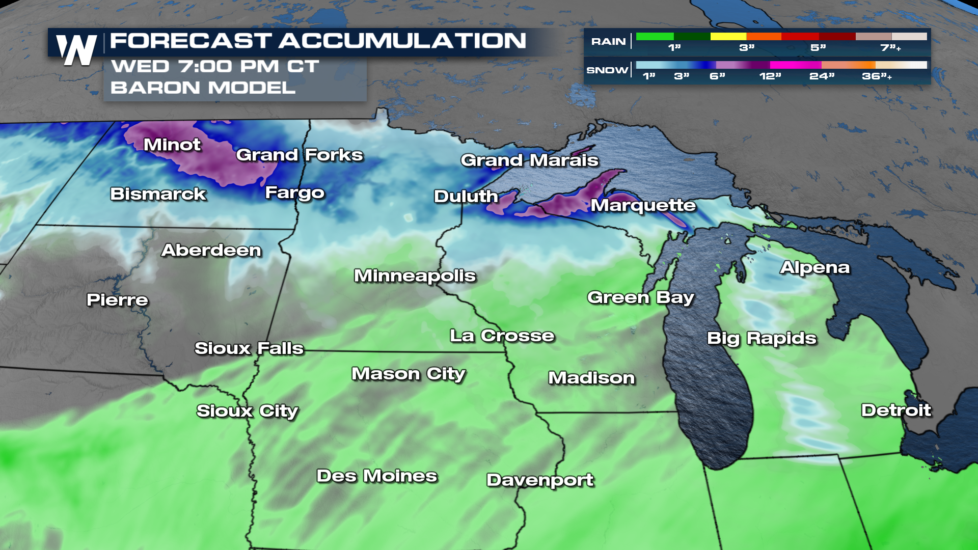 With fast-moving systems, it can be a little tricky nailing down exact numbers, but half a foot could be possible. The best odds look to be in North Dakota and Minnesota.