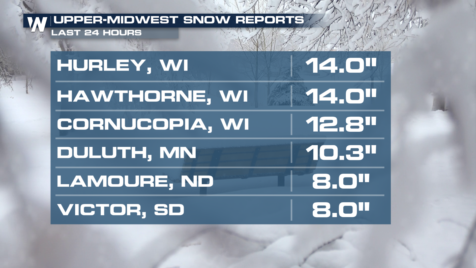 A low-pressure system blowing through the Upper Midwest has produced over a foot of snow and winds up to nearly 80 mph! This system will slow down for these areas for about a day before our next system moves in Friday.
