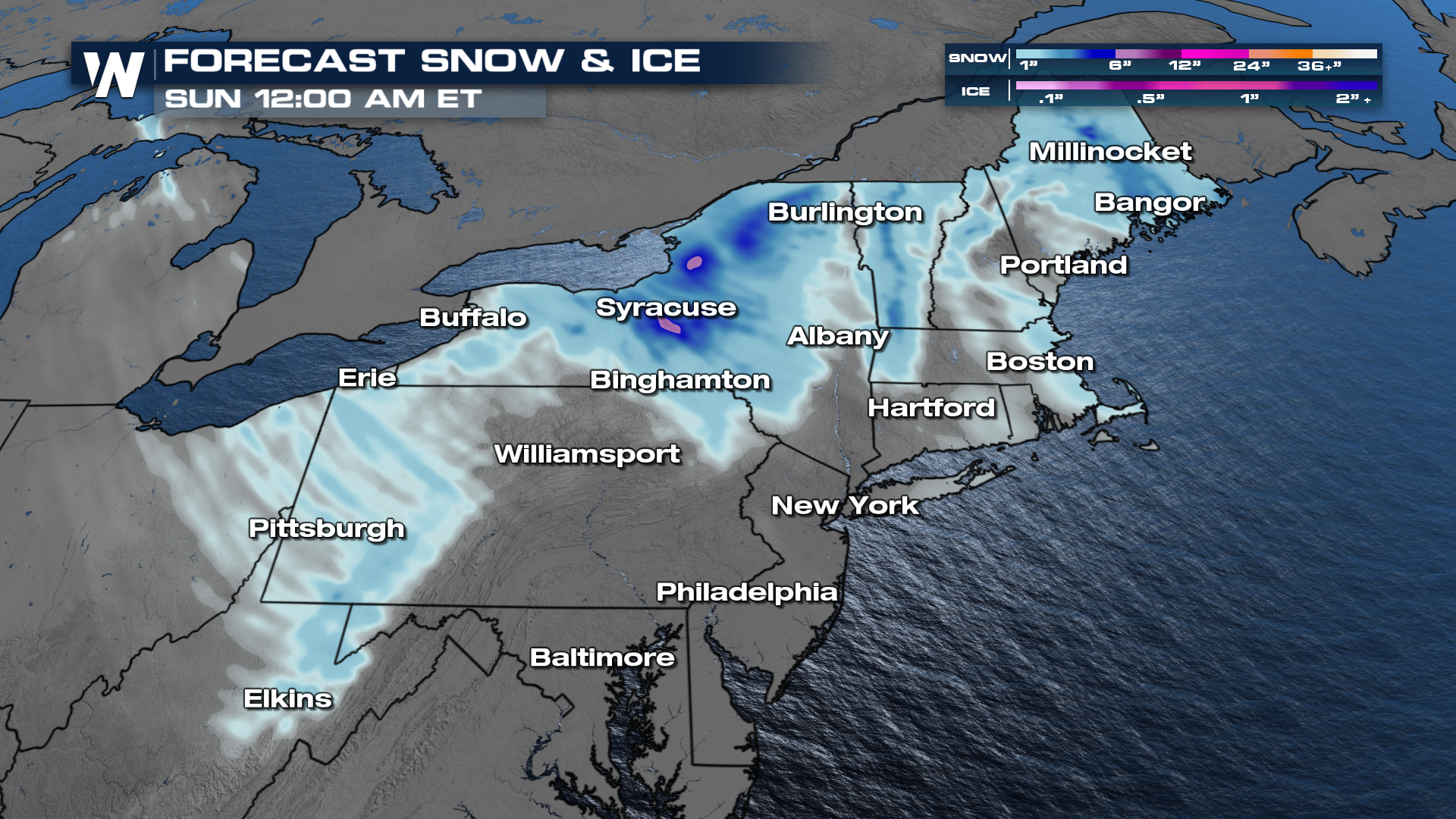 When all is said and done, the heaviest snow ends up in upstate New York and most of the New England area. With a few of these lake effect bands cranking well into late week, we can see some totals top out at 6"!